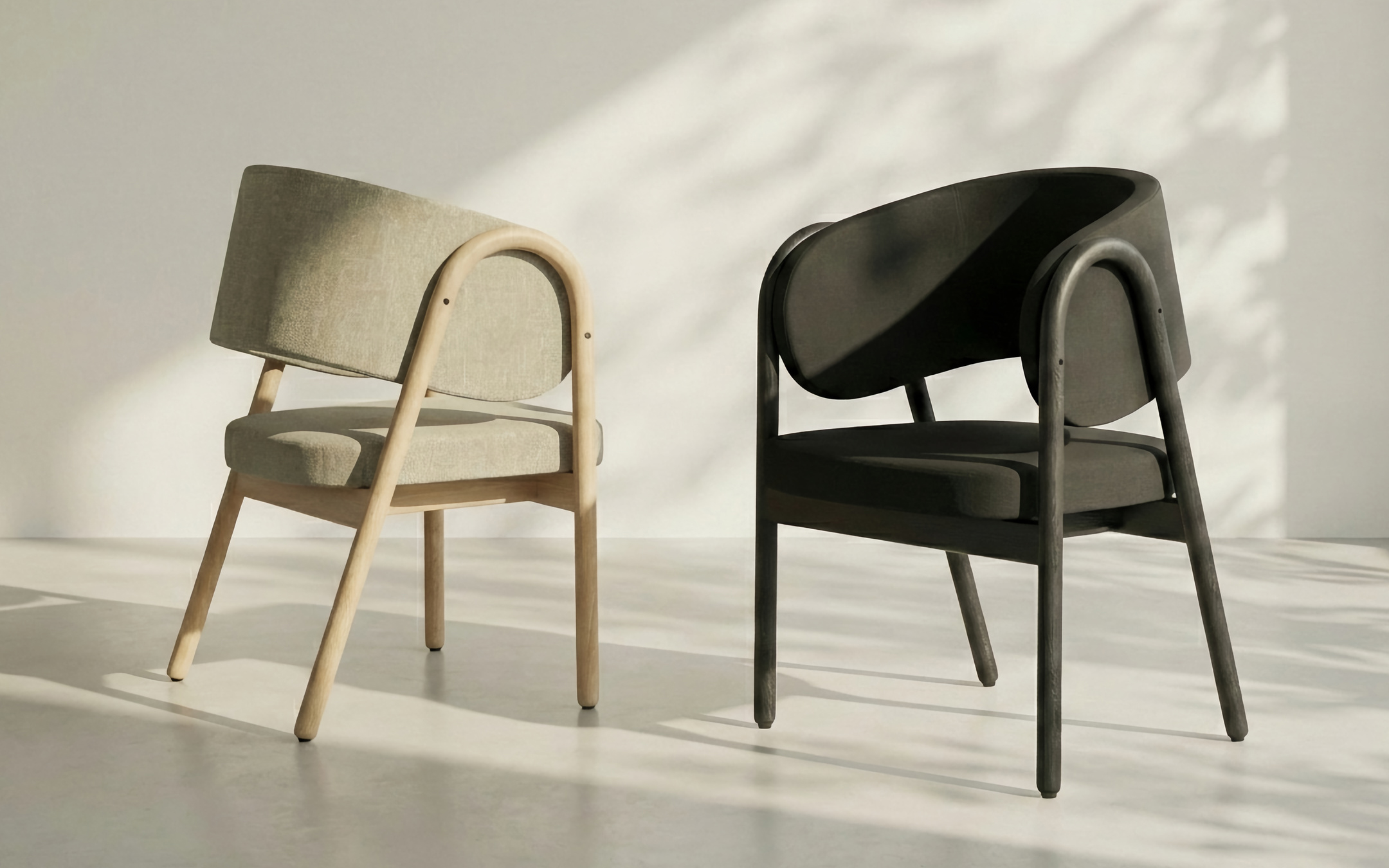 The most characteristic feature of the ‘Hold’ chair is its simple structure and the back detail that contains dynamic movement while harmonizing with it. The circular part where the structure contacts the back forms the center of the cyclical movement on the back, establishing adynamic connection with it. The current state of the chair represents an ideal moment where themovement is frozen.