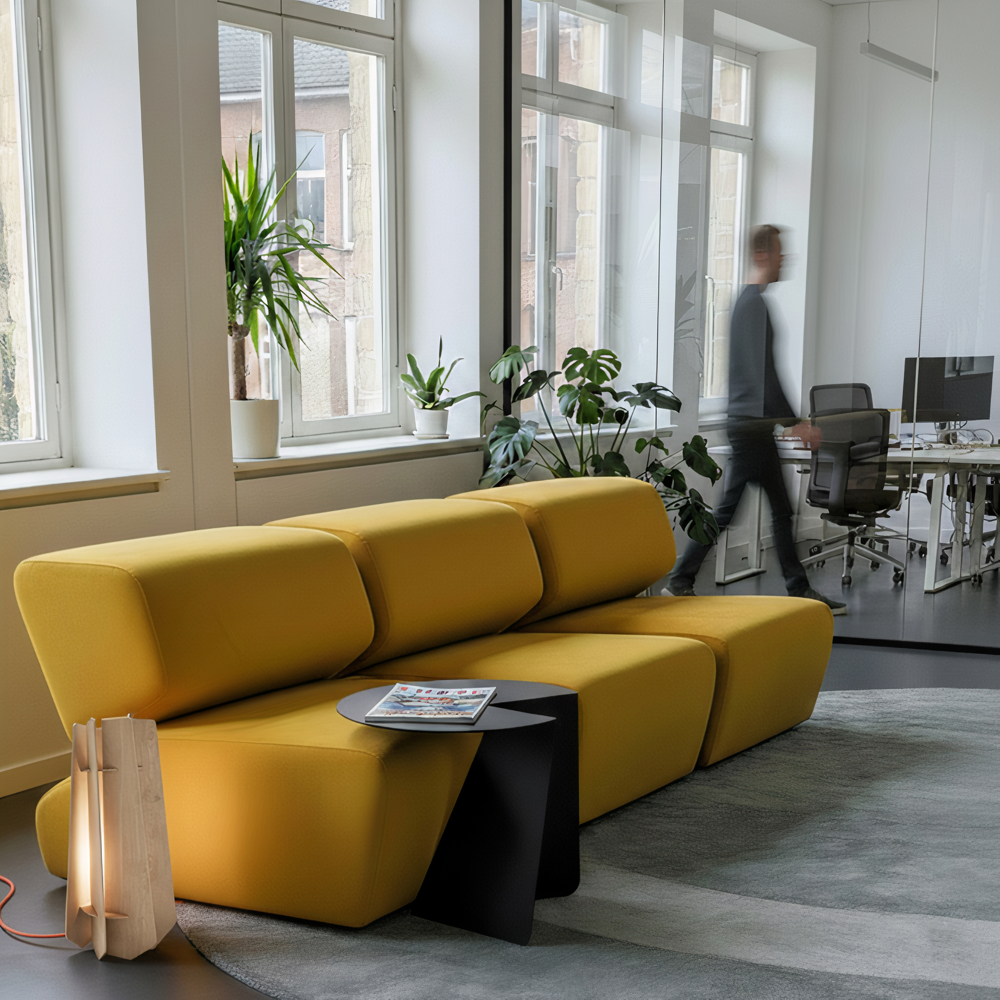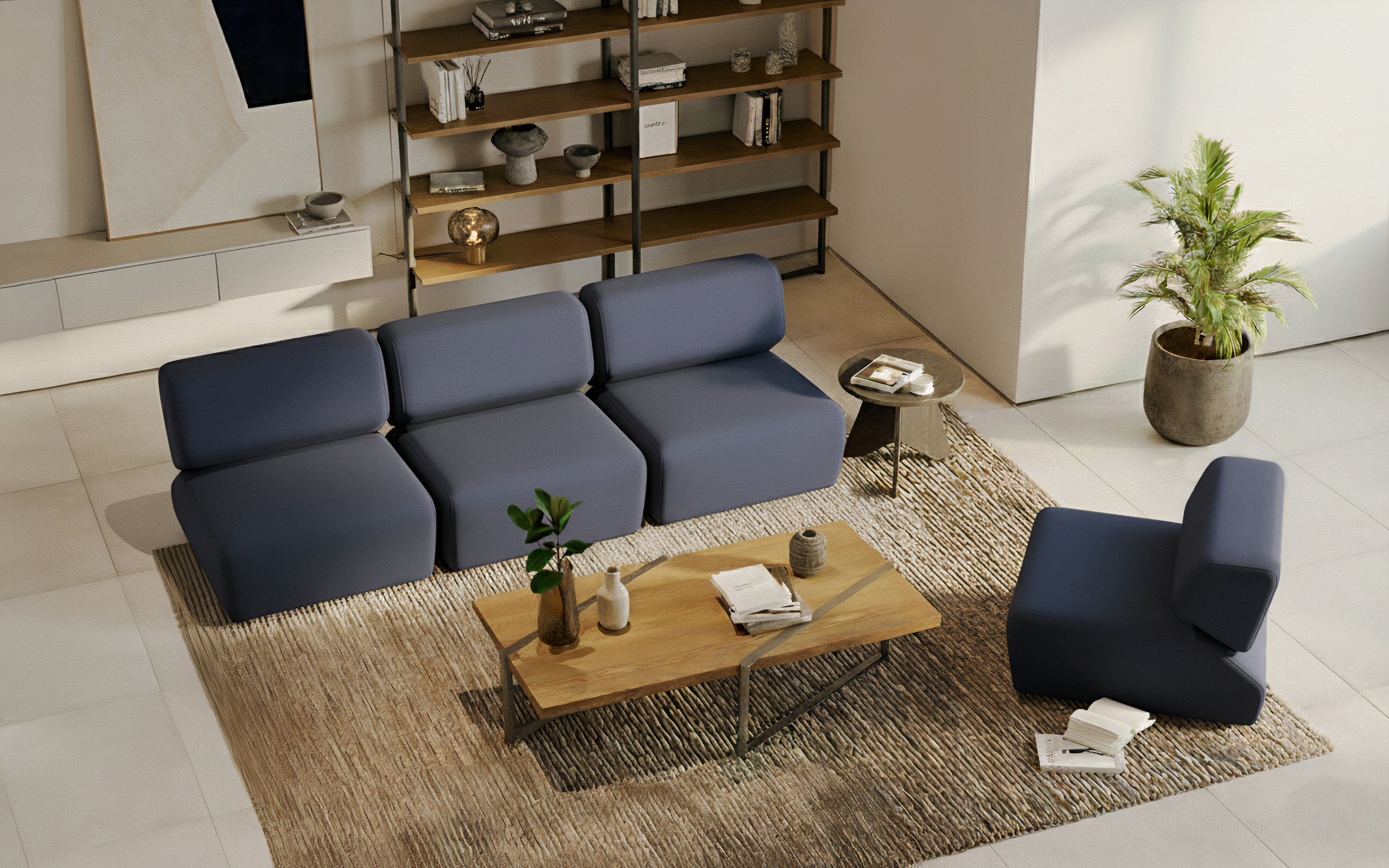 A lightweight armchair that stands out with its versatile usage surfaces and strong graphic effect. When placed side by side, it provides a long seating surface, making it a versatile solution for both domestic and public spaces.