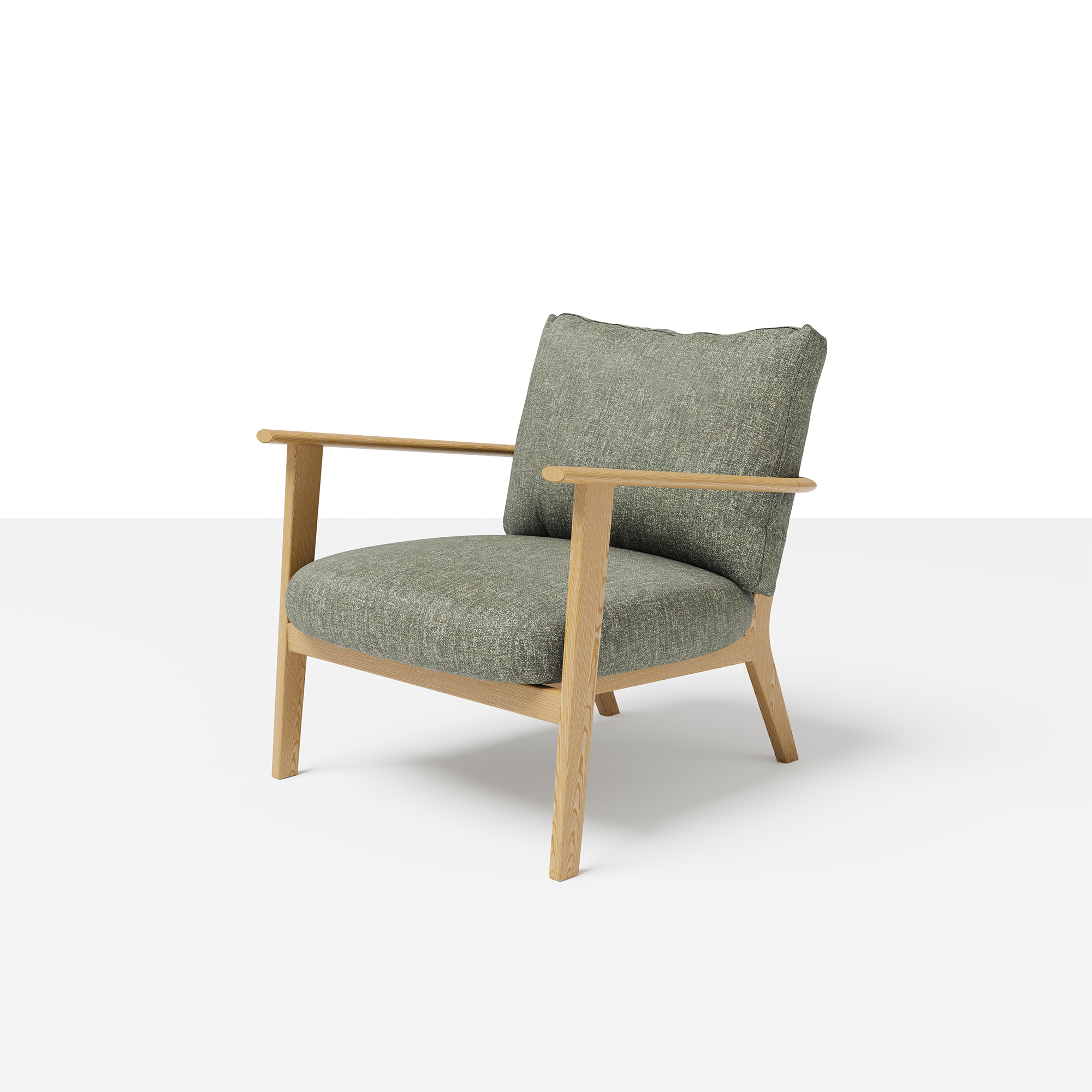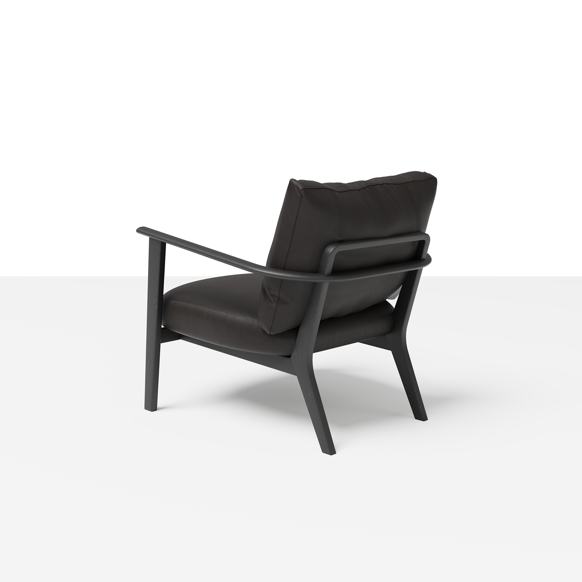 A modern armchair featuring a tubular bent metal frame and two cushions of equal size. Depending on the upholstery selection, it is